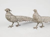 Couple de faisans marchant en bronze argenté. Trav