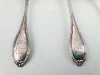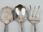 HENRI GAUTHIER & HENRI LAPPARRA, début du XXe siècle : Suite de 4 pièces à mignardises en argent 950 mil. modèle navette à filets rubanés et culot chantourné. Minerve 1er titre de 1838 et 2 différents poinçons de Maître : H.G Etoile et 2 croix (actif 1902-1920) et H.L rat (actif après 1923). Monogrammées SS. Poids : 126,7 g. L. 13,5 à 14,8 cm. Rayures et usures d’usage. A rapprocher des lots de la vente N° 27, 31, 32, 33, 88 et 89 de même origine pour former une ménagère complète.