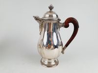 HENRI LAPPARRA, Années 1920-1930 : service à thé-café en argent 950 mil. de 4 pièces comprenant 1 cafetière à bec marabout (H. 26,5 cm), 1 théière (H. 22,5 cm), 1 sucrier couvert (H. 18,5 cm) et 1 pot à lait (H. 13,7 cm). Modèle balustre à pans sur piédouche circulaire, les bordures perlées, les agrafes et anses en bois exotique sculpté à décor de feuilles d’acanthe, les frétels en urne. Minerve 1er titre de 1838 et poinçon de Maître au rat insculpé en 1923. Poids brut : 2504 g. Non monogrammé. TBE. A rapprocher du lot suivant N° 39 présentant 1 plateau de service du même modèle mais non signé.