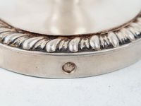 ODIOT, époque LOUIS-PHILIPPE : saucière casque en argent 950 mil. modèle ovale à frises de godrons tors, la prise à longue palmette. Poinçons parisiens 1er titre au vieillard 1819-1838 et de garantie, d’orfèvre à la lampe antique de CHARLES-NICOLAS ODIOT (1823-1865) (dans le pied). Chiffrée RV en lettres anglaises. Poids : 477,5 g. H. 19 cm. L. 20 cm. Légères rayures. Petite restauration. TBE général. Fournisseur attitré du roi Louis-Philippe et de la famille Orléans, Charles-Nicolas Odiot (1789-1868) succède à son père Jean-Baptiste-Claude Odiot (1763-1850) en 1823 et son fils Jean-Baptiste Gustave Odiot prendra la suite en 1865 jusqu’en 1894.