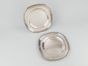 PFENNINGER, Années 1930 : Paire d’assiettes en argent 950 mil. modèle carré à pans moulurés de filets. Minerve 1er titre de 1838 et poinçons de Maitre. L’une des assiettes est signée. Poids : 784 g. Côté : 24,5 cm. Rayures d’usage. TBE.