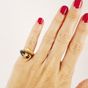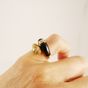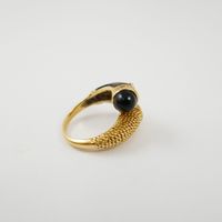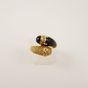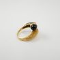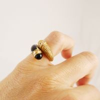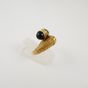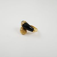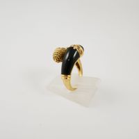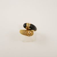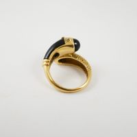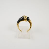 Bague croisée en or 750 mil. à décor torsadé d’un côté et sertie d’un onyx de l’autre, le tout réhaussé de 2 lignes de diamants 8/8 (TDD : 48) (largeur : 1,4 cm environ) (petits éclats sur un diamant). 6,2 g. brut