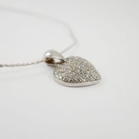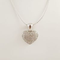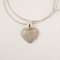 Collier en or gris 750 mil. composé d’un câble torsadé et d’un pendentif cœur pavé de diamants brillantés (longueur : 40 cm environ) (dimensions : 3 x 2,3 cm environ) (câble déformé). 12,1 g. brut