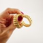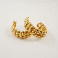 Paire de créoles en or 750 mil. à maille US (diamètre : 3 cm environ) (largeur : 1,2 cm environ) (déformation). 12,3 g.