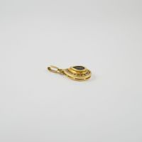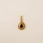 Pendentif en or 750 mil. centré d’un saphir taille poire dans un entourage de diamants brillantés (hauteur : 1,9 cm environ). 1,6 g. brut