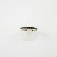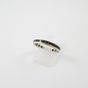 Alliance en or 375 mil ciselée sertie de pierres vertes calibrées (TDD : 55,5). Travail anglais. (Pierres cassées, usures, salissures). (Exemptée : art.524 bis du CGI al. c). 2,9 g. brut.