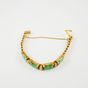 Bracelet en or 750 mil à maillons chevrons, retenant 4 motifs sertis d'une plaque de jade teint alternés de diamants TA (0,10 ct environ chaque), avec chaînette de sécurité. (Longueur : 15 cm). 23,4 g. brut.