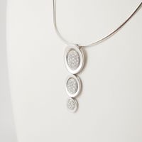 Collier semi-rigide en or gris 750 mil retenant un pendentif orné de pavage de diamants brillantés (longueur : 42 cm, longueur du pendentif : 4,3 cm) (déformations). 10,4 g. brut.