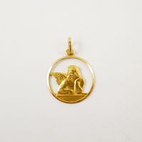 Médaille « Ange de Raphaël » ajourée en or 750 mil (diamètre : 2 cm, hauteur avec la bélière : 2,7 cm). 3,1 g.