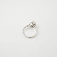 Solitaire en or gris 750 mil orné d’un diamant brillanté de 0,45 ct environ en serti griffes (TDD : 53). 3,4 g. brut.