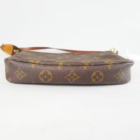 LOUIS VUITTON. Année 2002. Pochette « Accessoire » en toile Monogram et cuir naturel. Fermeture éclair, dragonne amovible réglable. Taches. 13 x 21 x 3cm environ. Dustbag, boîte.