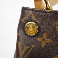 LOUIS VUITTON. Année 2015. Sac « Gaïa » en toile Monogram et cuir noir sur les côtés. A porter à la main ou sur l’épaule. Garnitures (anse et clochette) en cuir naturel. Cadenas, 2 clés sous clochette. Intérieur en tissu noir avec 3 poches. Numéroté. Pieds de fond pour protéger le sac. Louis Vuitton Paris Made in France. 30 x 34 x 16 cm environ. Bon état, quelques très légères traces sur l’anse. Dustbag et boîte.