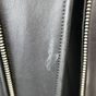 THE KOOPLES. Perfecto en cuir Agneau noir, col cranté, fermeture éclair, pattes d’épaules, 3 poches biais et bas des manches zippés, une poche à bouton, ceintures de côté à la taille. Griffe noire, graphisme blanc. Taille XS. Bel état (quelques salissures, usures, petit trou à la doublure).