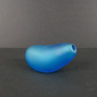 DAUM France et Philippe STARCK (1949) - « La Toute Petite Etrangeté » Vase soliflore de table en pâte de verre dépolie de couleur bleue. Signée « Daum » et « Starck ». Avec sa boîte cartonnée grise et son livret. Longueur : 10cm. Depuis 1988, une collaboration existe entre la Maison Daum et Philippe Starck. Faisant suite à ses vases-sculptures « Etrangeté », « La Toute Petite Etrangeté » fut créée à l’occasion de l’Exposition universelle de Séville en 1992, suivant ses termes « un tout petit vase pour une toute petite fleur ».