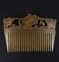 Ensemble de 3 Peignes de chignon de deux tailles différentes en corne blonde, partiellement teintée, la galerie à décor de fleurs et feuillages au naturel. Travail Art Nouveau, vers 1900. Dimensions : 7x9,5cm et 9x11,5cm. (Petits éclats et légères déformations).