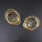 Paire de vases en verre émaillé or et violet à décor de filets et pampres de vignes en guirlandes retenues par des nœuds. Vers 1900. Hauteur : 34cm. (Usures à l’or, quelques éclats).