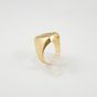 Bague chevalière en or 750 mil., travail français (TDD : 59) (largeur : 1,6 cm environ) (déformation, chiffrée). 5,8 g.