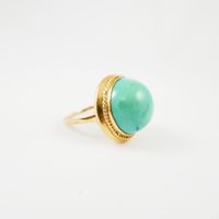 Bague dôme en or 750 mil. à décor torsadé, ornée d’un cabochon de turquoise (TDD : 57) (diamètre : 2,1 cm environ) (déformation). 9,4 g. brut