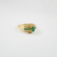 Bague en or 750 mil. centrée d’une émeraude ovale