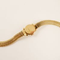 Bracelet-montre de dame en or 750 mil., petit boîtier rond, cadran gris, index bâton et chiffres arabes appliqués, mouvement mécanique, bracelet et boucle à cliquet en or 750 mil. ; cadran et mouvement signés ROLEX, boîtier non signée (diamètre : 16 mm environ) (longueur : 17 cm environ) (usures au cadran, verre rayé). 27,6 g. brut