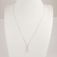 Collier en or gris 375 mil retenant un pendentif serti d’une chute de diamants brillantés (longueur réglable : 38,5 et 42 cm, pendentif : 2,2 cm). 1,2 g. brut.