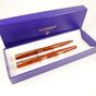 Parure de stylos WATERMAN comprenant un plume et un bille en métal laqué façon loupe d’orme. Avec écrin.