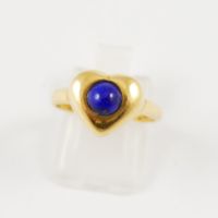 Bague coeur en or 750 mil ornée d'un cabochon de pierre bleue (TDD : 53). 2,9 g brut.