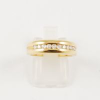 Bague jonc en or 750 mil à deux godrons, centrée d'une ligne de diamants (TDD : 54). 4,9 g brut.