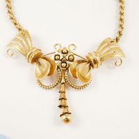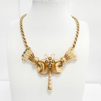 Collier en or 750 mil à maillons corde torsadé, centré d'un important motif ajouré figurant un motif floral (Long : 39 cm environ). 51,5 g brut.