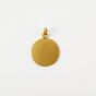 Médaille d’amour A. AUGIS « Plus qu’hier Moins que demain » en or 750 mil rehaussée d’un diamant taillé en rose et de pierres de synthèse rouges calibrées. Signée. (Diamètre : 1,6 cm environ). (Petites usures). 2,3 g. brut