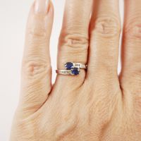Bague croisée en or gris 750 mil sertie de deux saphirs ovales soulignés de diamants taille brillant. (TDD : 51,5). (Egrisures). 2,1 g. brut