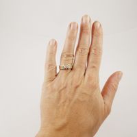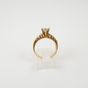 Bague solitaire en or 585 mil centrée d’un diamant taille brillant de 0.40ct environ en serti griffes, épaulé de trois lignes de diamants taille brillant. (TDD : 53,5). 6,5 g. brut