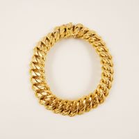 Bracelet en or 750 mil à maille gourmette US, fermoir à cliquet et double huit de sécurité (l’un défectueux). Travail français. (Longueur : 20cm ; Largeur maille : 14mm). (Chocs et enfoncements, soudures). 21,4 g.