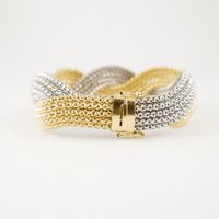 Bracelet UNOAERRE 2 ors 750 mil à maille tressée, fermoir à cliquet et double huit de sécurité. Signé. (Longueur : 20cm ; Largeur maille : 2,5cm). 40 g.Pouvant former parure avec le lot précédent.