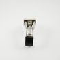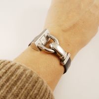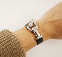 * Montre-bracelet de dame VAN CLEEF & ARPELS Collection « Cadenas » en acier, boîtier cadenas, petit cadran carré argenté à index bâtons appliqués, fond vissé, mouvement à quartz, sur bracelet cuir noir usé à boucle en acier. Signée et numérotée. (Dimensions boîtier : 29x24mm ; Tour de poignet : 15cm). (Rayures).