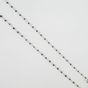 Sautoir en or gris 750 mil composé d’une fine chaîne ponctuée de perles de diamants noirs facettées. (Longueur : 110cm environ). (Eclats et manques de matière). 4,4 g. brut Pouvant former parure avec le lot suivant.