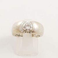 Solitaire en or rhodié 750 mil satiné orné d'un diamant en demi serti clos (environ 0,85 ct) (TDD : 52) (Chiffré). 7,4 g brut.