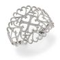 DJULA. Bracelet manchette ouvert et ouvrant en or gris 750 millièmes ajouré à décor de motifs cœurs entièrement sertis de diamants ronds de taille brillant. Signé. Diamètre intérieur : 5,2 cm Poids brut : 27 g