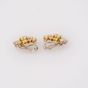 Paire de boucles d’oreilles en or 750 millièmes de deux tons, chacune ornée de diamants princesses, poires, navettes et ronds de taille brillant. Système à pince et pour oreilles percées. Hauteur : 1,7 cm Poids brut : 5,6 g