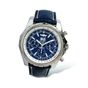 BREITLING for Bentley Montre d’homme ronde chronographe. Référence A44362. Boîtier en aciernuméroté 2129029. Lunette tournante à rehaut interne. Cadran bleu à trois sous-compteurs, index appliqués et guichet date à 12h. Mouvement mécanique à remontage automatique signé.Diamètre : 49 mm environ. Bracelet en cuir signé avec boucle déployante signée. Sans écrin ni papiers.