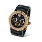 CHAUMET, Class One XXL. Montre d’homme ronde chronographe. Boîtier en titane et or rose 750 millièmes numéroté 646B-0281. Lunette tournante en or rose 750 millièmes sertie de diamants. Cadran noir guilloché à trois sous-compteurs, index et chiffres arabes appliqués, aiguilles luminescentes et guichet date à 4h. Mouvement mécanique à remontage automatique signé. Diamètre : 44 mm environ. Bracelet en caoutchouc signé avec boucle déployante en or rose 750 millièmes signée. Poids brut : 170,3 g. Écrin, stylet de quantième, sans papiers.