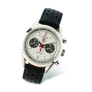 CHOPARD Montre d’homme ronde. Référence 16/8457. Boîtier en acier numéroté 1309241. Cadran noir à index et chiffre arabe appliqué luminescents, minuterie sur le rehaut. Guichet date à 3h, réserve de marche à 6h et aiguilles luminescentes. Mouvement mécanique à remontage automatique signé et numéroté. Diamètre : 44 mm environ. Bracelet en caoutchouc imitation pneu signé avec boucle déployante en acier signée. Sans écrin ni papiers. Vis de fixation de boucle déployante cassée;