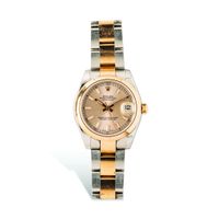 ROLEX, Datejust. Montre de femme ronde. Référence 178241. Boîtier en acier numéroté Z039907. Lunette et couronne en or rose 750 millièmes. Cadran rose à index appliqués et aiguilles luminescentset guichet date à 3h. Mouvement mécanique à remontage automatique. Calibre 2235. Diamètre : 32 mm environ. Bracelet Oyster en acier et maillons centraux en or rose 750 millièmes référence 72161 clasp code OP7. Poids brut : 98,3 g. Sans écrin ni papiers. E) (art. 524 bis du CGI, al.C).