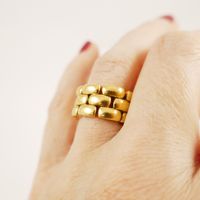 Bague bandeau souple CHAUMET Collection « Khesis » en or 750 mil composée de trois rangs de maillons grain de riz articulés. Signée CHAUMET PARIS et numérotée. (TDD : 55 ; Largeur : 10mm). (Légers chocs et rayures). 12,2 g.