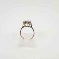 Bague en or gris 750 mil à chaton carré serti de diamants tailles brillant et 8/8. Travail français. Poinçon de l’atelier WÉGELIN Frères. (TDD : 50 ; Dimensions chaton : 9.5x9.5mm). (Trace de mise à taille). 3,1 g. brut