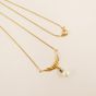 Collier en or 750 mil à fine maille forçat limée centré d’un motif godronné retenant en pampille un saphir rond et une perle de culture blanche. Travail français. (Longueur : 40cm ; Largeur maille : 1mm ; Diamètre perle : 6mm). 2,4 g. brut