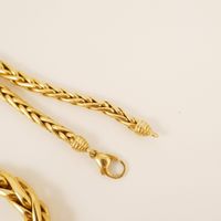 Collier en or 750 mil à maille palmier en chute. Travail français. (Longueur : 45cm ; Largeur maille : de 4 à 10mm). (Légers chocs et enfoncements). 33,9 g.