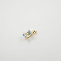 Pendentif en or 750 mil. orné d’une topaze bleue taille ovale encadrée de 4 diamants 8/8 en sertis clos. (Hauteur : 0,7 cm). 0,9 g. brut