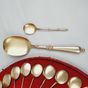EMILE FROMENT-MEURICE, XIXe siècle, Années 1870 : service à glace en vermeil 950 mil. à décor de bagues moulurées de filets et tiges à la russe dans son écrin signé comprenant 18 pelles à glace et leur pelle de service. Poinçon de Maître de Froment-Meurice sur la pelle de service (insculpation en 1866-1867) et de fabricant de Jean GRANVIGNE (actif 1868-1889) sur les petites pelles. Poids : 414 g. L. d’une pelle : 13 cm. de celle de service : 23.4 cm. Non chiffré. Légères rayures. Ecrin défraichi chiffré R.L.R.E.