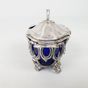 François-Alphonse DEBAIN, Second Empire : saleron ovale quadripode à 2 petites prises en argent et décor Néo-Renaissance de médaillons feuillagés ajourés, le couvercle à charnière à pans. Doublure en verre bleu d’origine. Minerve 1er titre de 1838 et poinçon de Maître (1847-1864) d’une nacelle et deux petits bonshommes. Poids net d’argent : 80.8 g. L. 11 cm aux petites anses. H. 8.3 cm. Oxydations et micro-éclats. TBE de fraicheur.